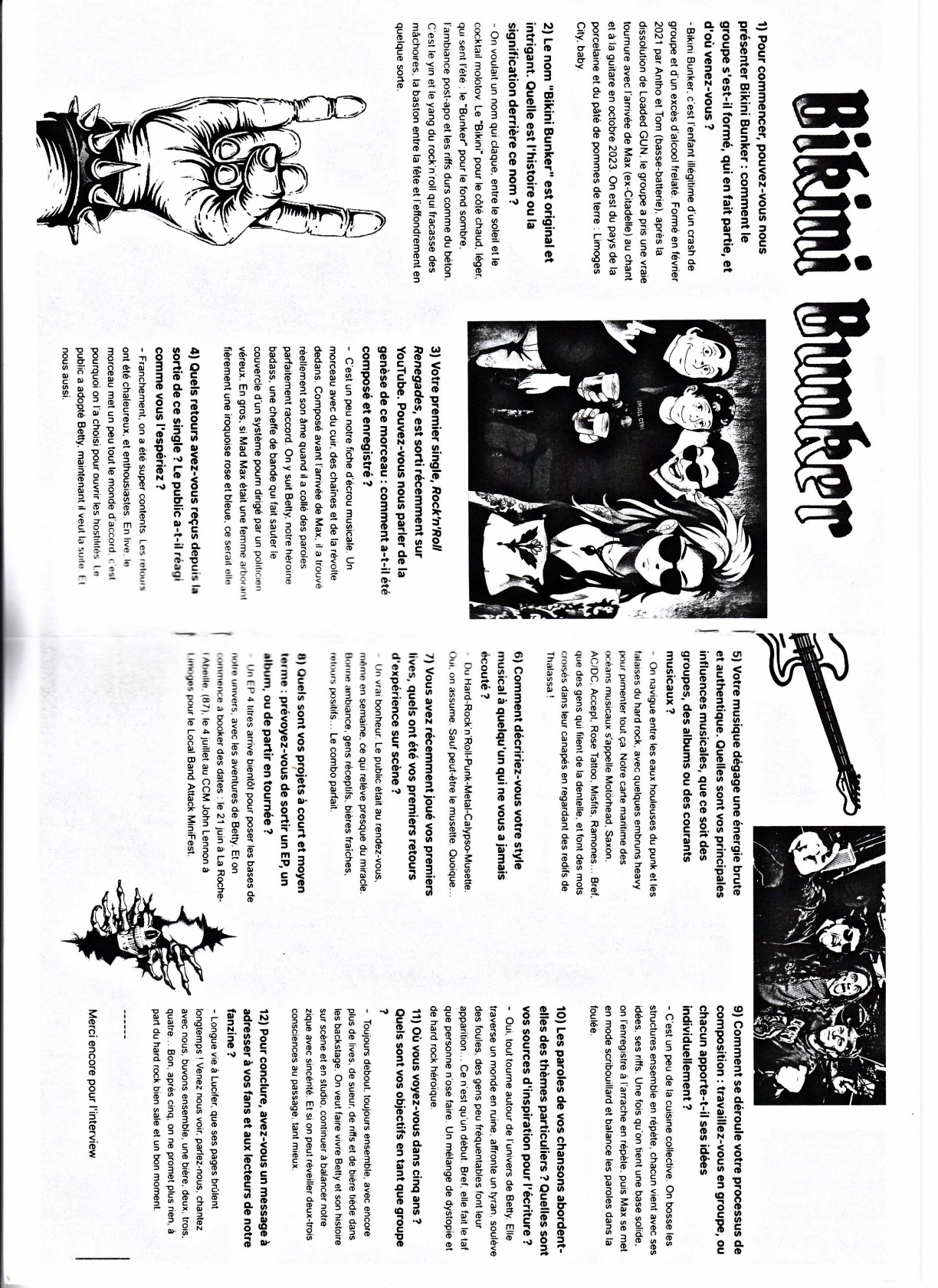 On voulait un nom qui claque, entre le soleil et le cocktail molotov. Le "Bikini" pour le côté chaud, léger. qui sent l'été le "Bunker" pour le fond sombre, l'ambiance post-apo et les riffs durs comme du béton. C'est le yin et le yang du rock'n'roll qui fracasse des mâchoires, la baston entre la fête et l'effondrement en quelque sorte.